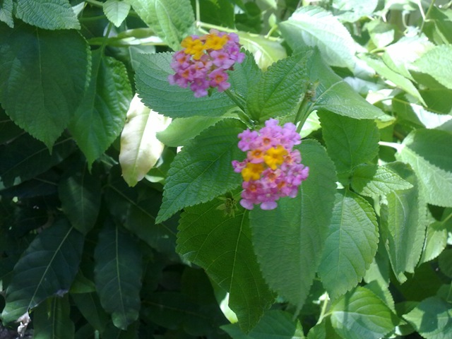 路边的花儿很漂亮,但是不能采,仅有的一两朵花儿很显眼。